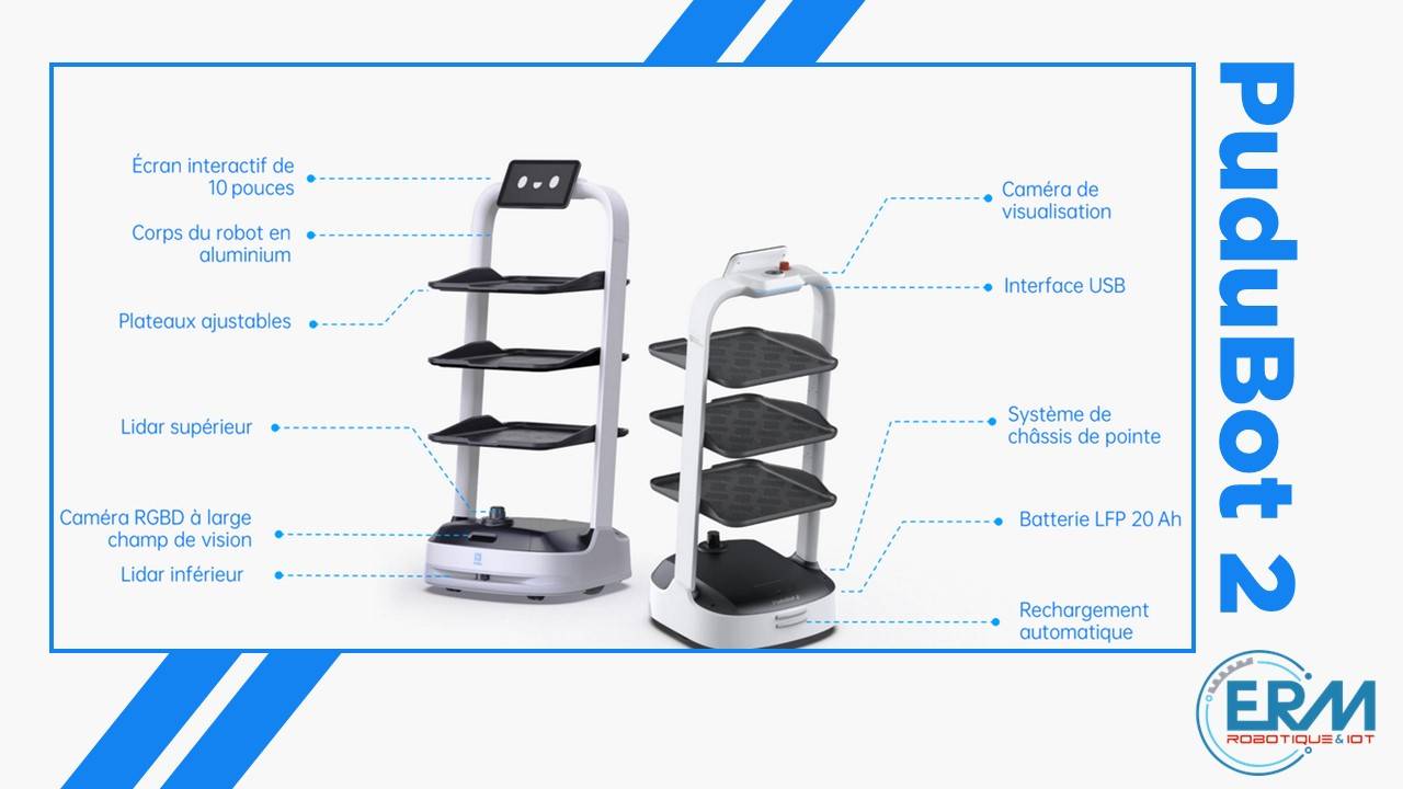 Selon la configuration utilisée et les options dont il est équipé, le robot PuduBot 2 peut