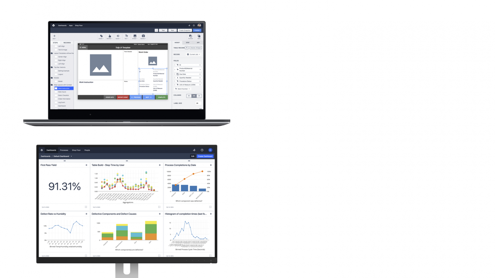 Préparez vos opérations pour l'avenir grâce à la plateforme GxP de Tulip et ses nombreuses fonctionnalités, basée sur le cloud, avec des analyses et une connectivité de pointe.